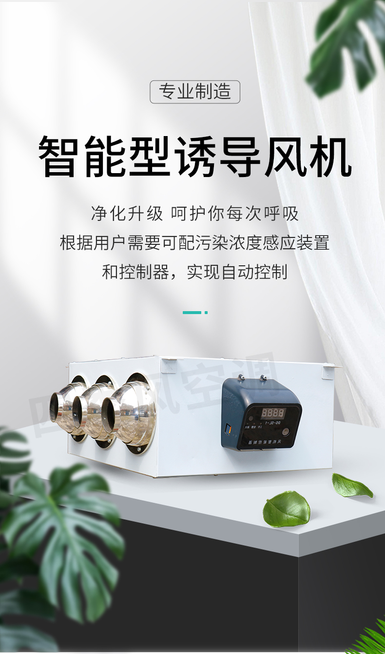 靖江市四季風空調設備有限公司——智能型誘導風機是無管道射流誘導通風系統的一部分,它與送風風機、排風風機組成整個系統。使用無管道射流誘導通風系統時,可省去設計、制造、安裝風管及其他配套工程方面的費用,這部分費用比使用的誘導風機機組昂貴得多